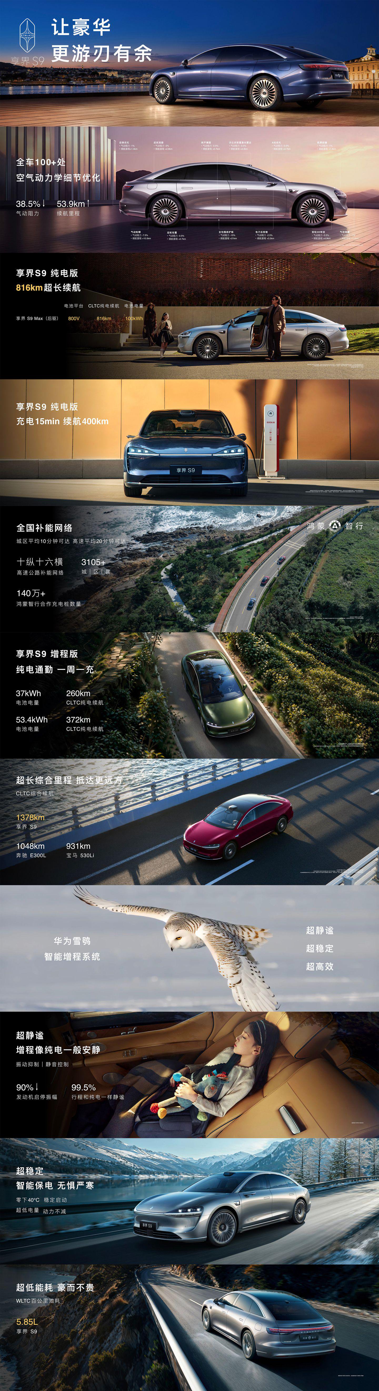 增程版:搭载华为雪鸮智能增程系统,CLTC 笼统续航里程最高 1378km。